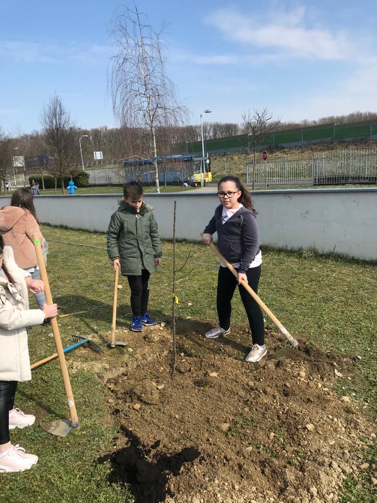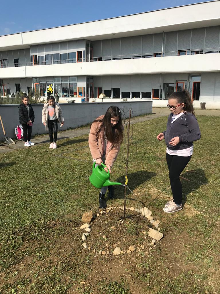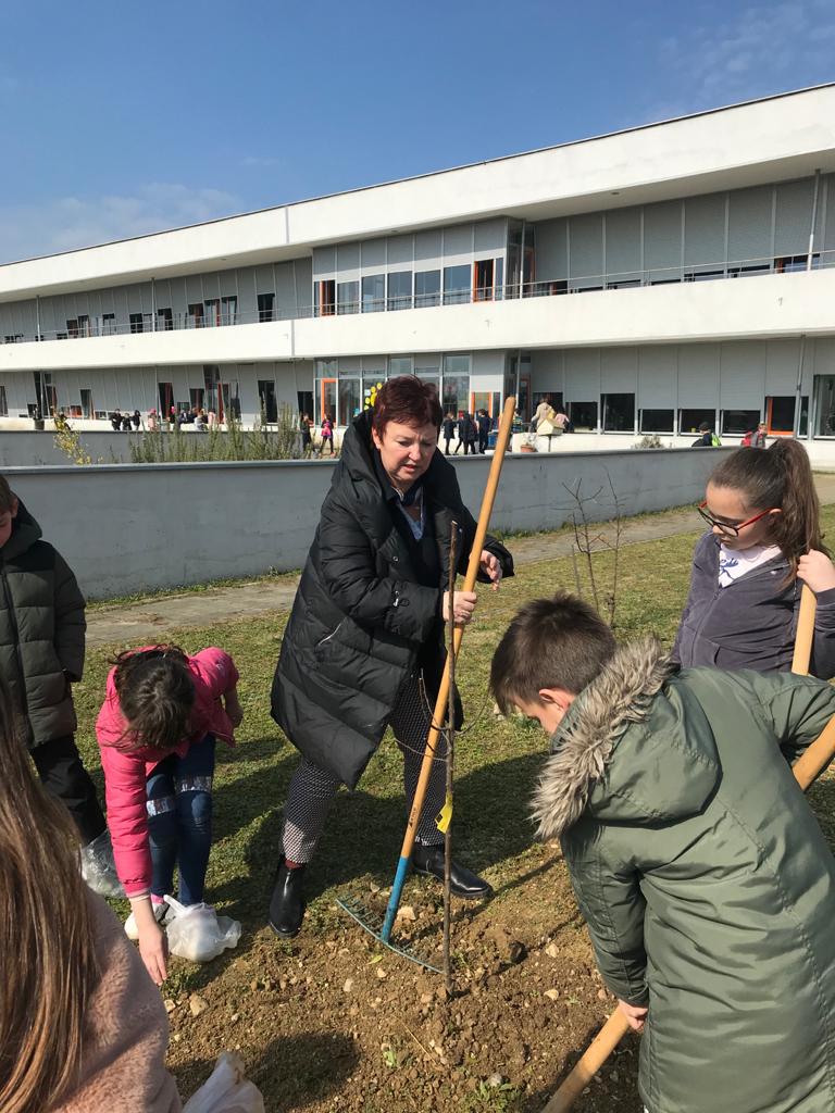 Učenici 4. razreda pod vodstvom učiteljica Martine Delišimunović Čmigović, Ivane Vlajčić, Natalije Kovač i Danijele Dujić, a u sklopu projekta Udruge za zaštitu prirode i okoliša “Zasadi stablo ne budi panj” posadili su u našem školskom vrtu četiri voćke : šljivu , krušku, trešnju i jabuku!