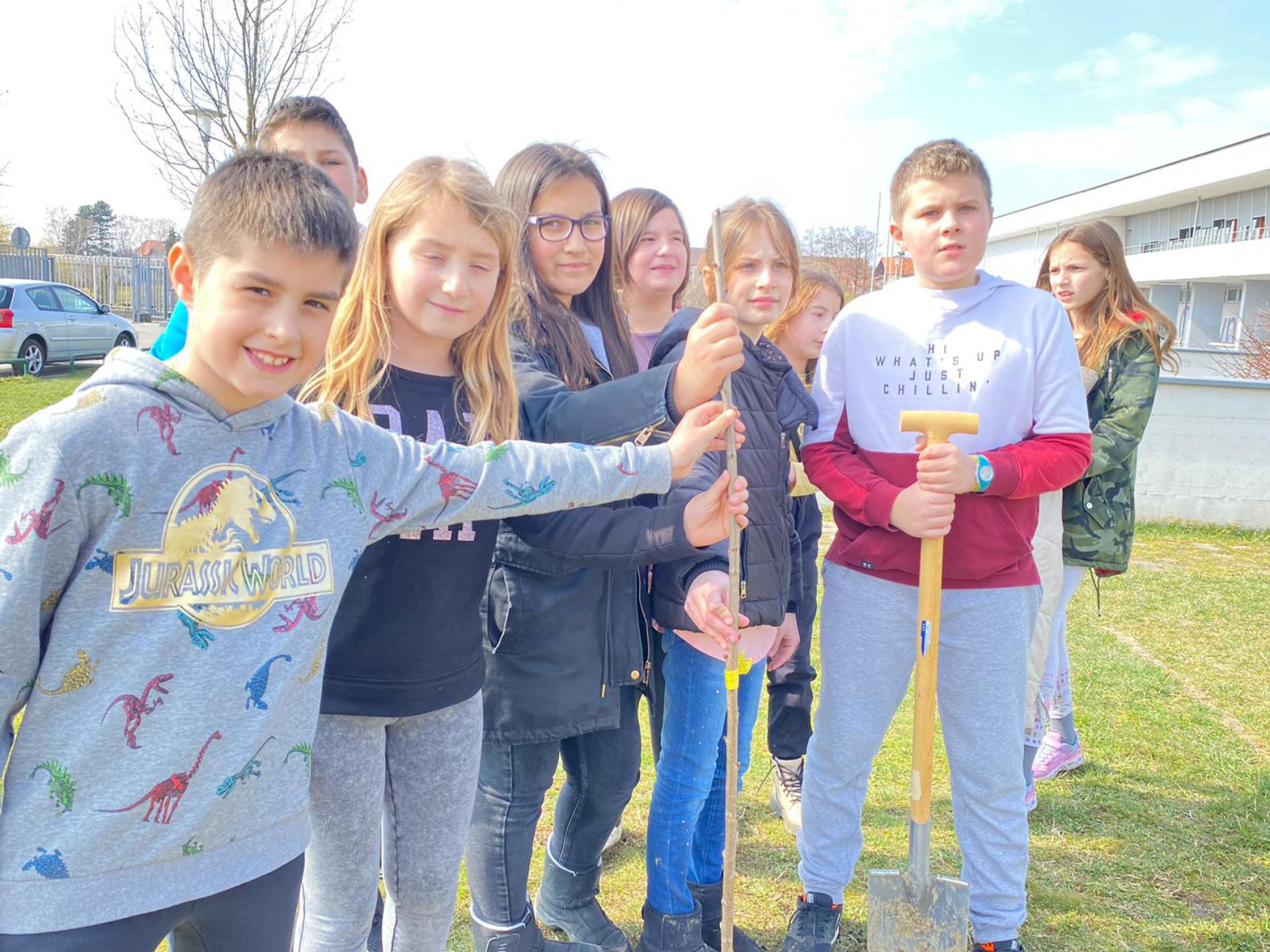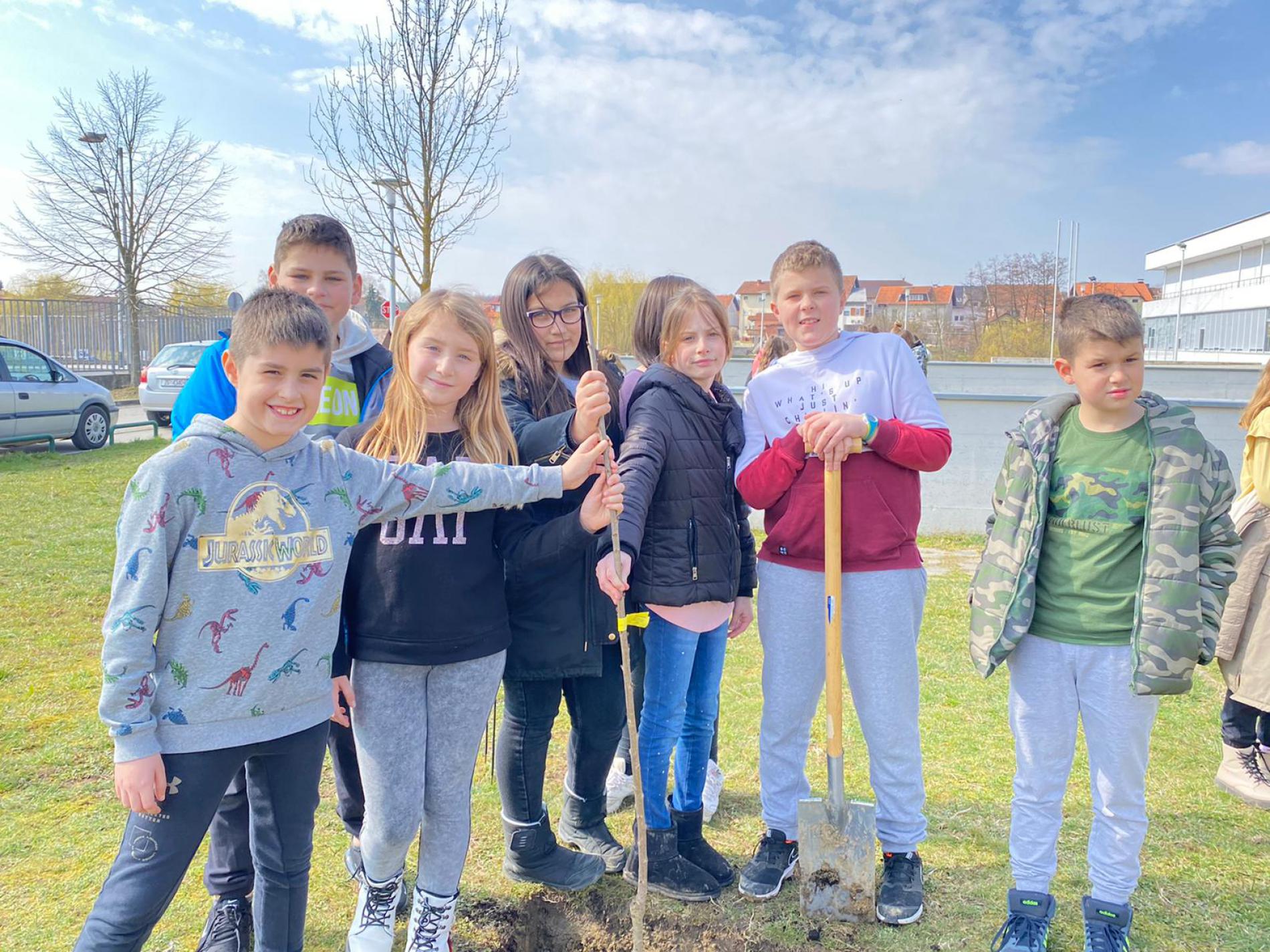 Učenici 4. razreda pod vodstvom učiteljica Martine Delišimunović Čmigović, Ivane Vlajčić, Natalije Kovač i Danijele Dujić, a u sklopu projekta Udruge za zaštitu prirode i okoliša “Zasadi stablo ne budi panj” posadili su u našem školskom vrtu četiri voćke : šljivu , krušku, trešnju i jabuku!