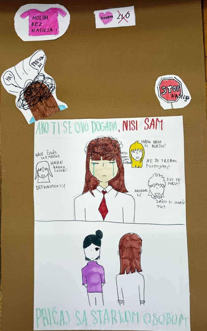 Učenici 5.b su kroz radionicu, pod vodstvom profesorice likovne kulture Zrinke Jurić Avmedoski i socijalne pedagoginje Sare Balley, poslali jasnu poruku da nasilje nije prihvatljivo ni u kojem obliku!